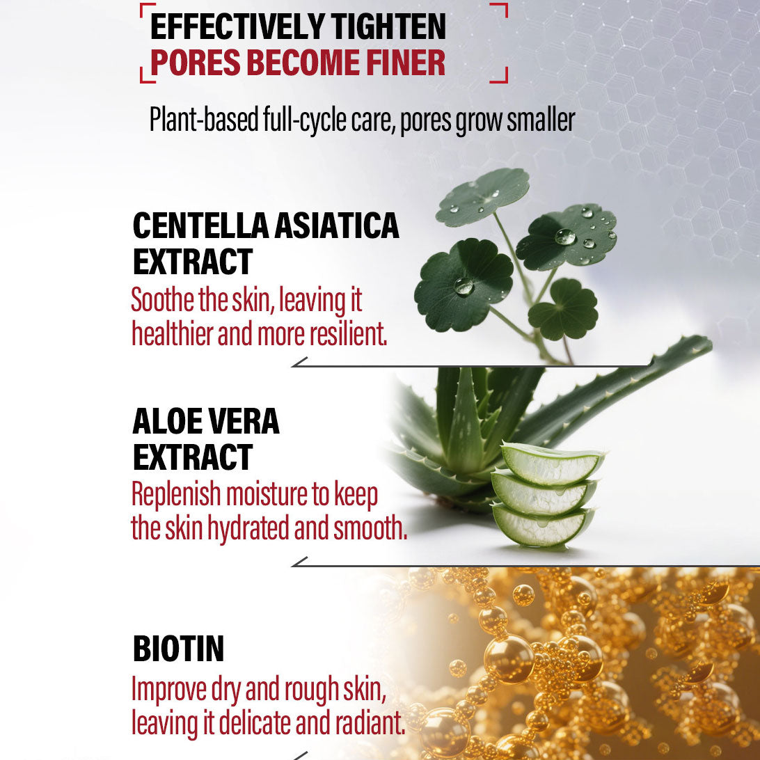 Designed to provide effective care without compromising comfort, making it perfect for sensitive and reactive skin types, Collagen helps to improve skin elasticity and plumpness, reducing the look of enlarged pores, and Biotin supports skin renewal.