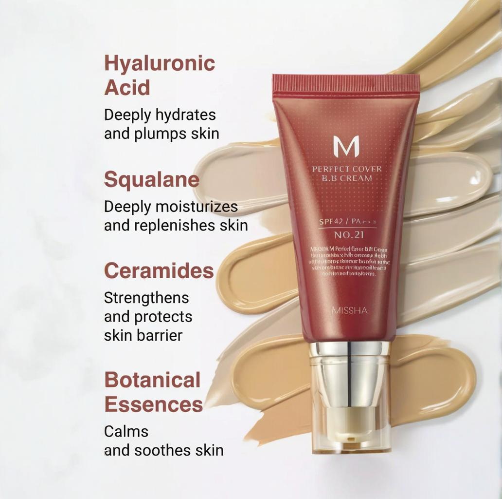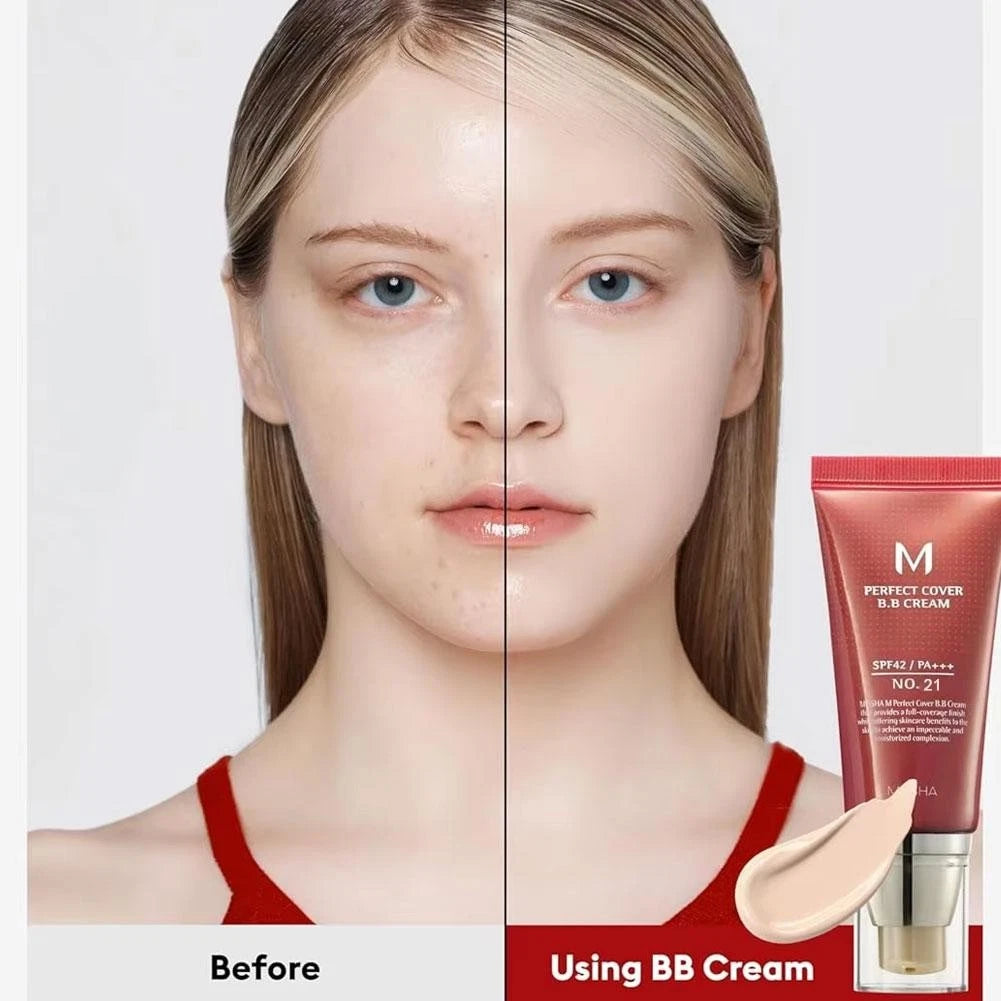 Full coverage, dewy Finish, all-day wear: achieve a flawless, radiant complexion with PERFECT COVER B.B CREAM – your ultimate all-in-one makeup and skincare solution! This lightweight yet high-coverage formula blurs imperfections, evens skin tone, and delivers a natural, dewy finish that lasts all day. It works on dry, oily, combination, and sensitive skin.