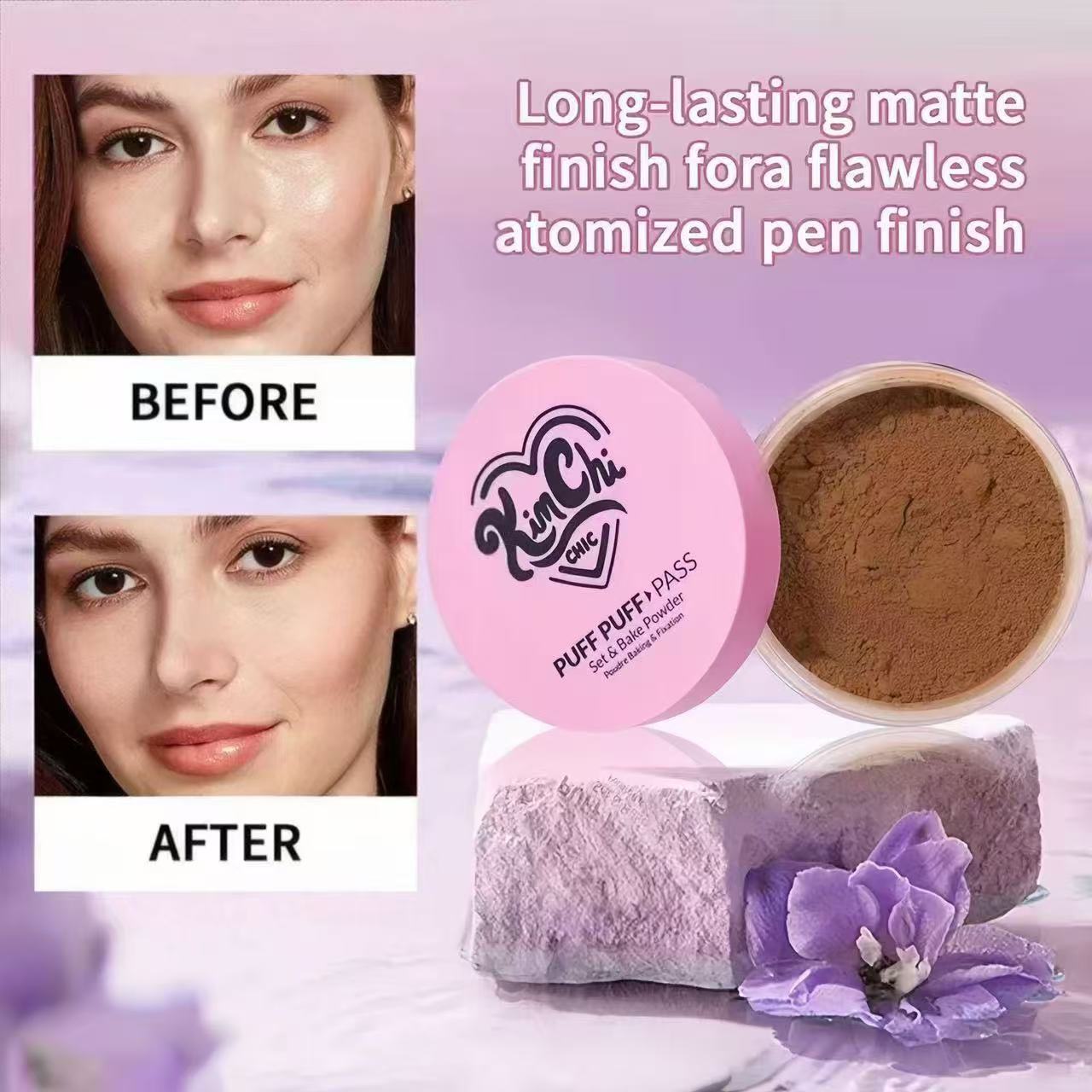 Oil Control & Radiance Boost! Say goodbye to midday shine and makeup meltdowns! Kimchi Makeup Setting Powder locks your look in place with weightless, ultra-fine texture—inspired by K-beauty’s obsession with long-wear perfection.