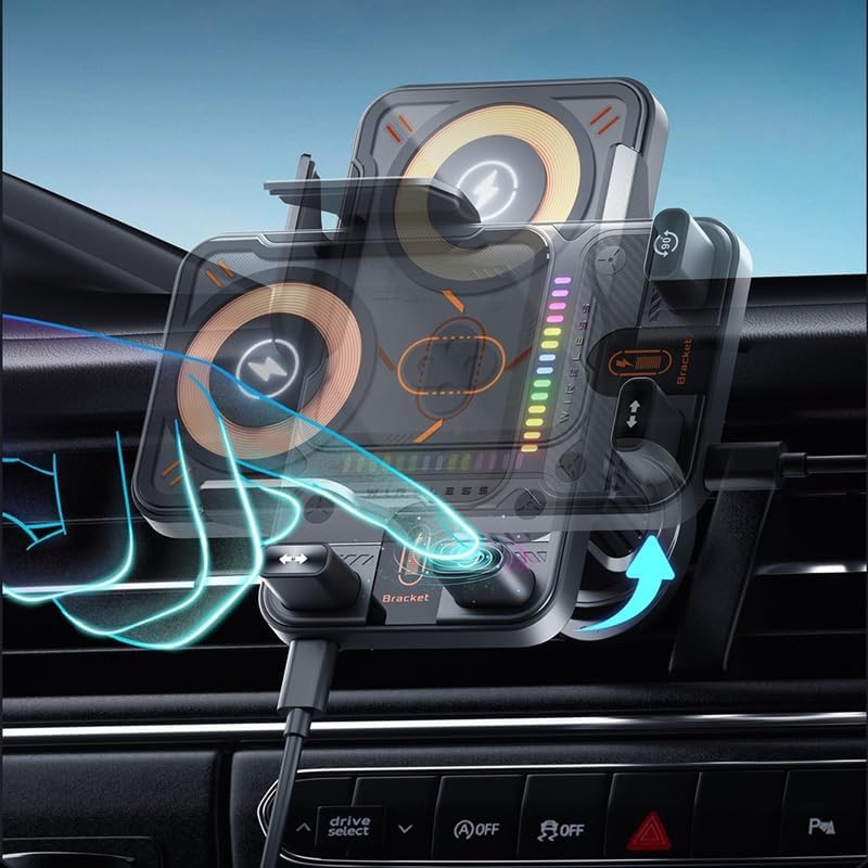 One-Touch Rotating Automatic Opening and Closing Wireless Charging Car Phone Holder