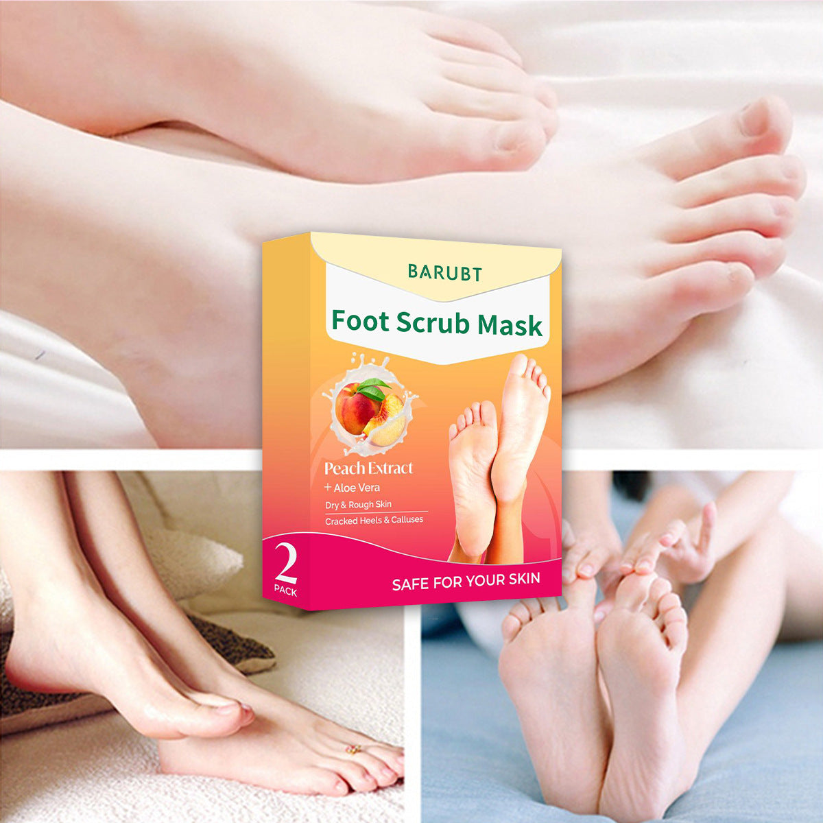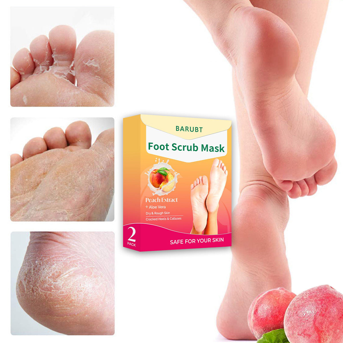 Peach Bliss Foot Peel Masks (2-Pack) – Baby-Soft Feet in 7 Days!