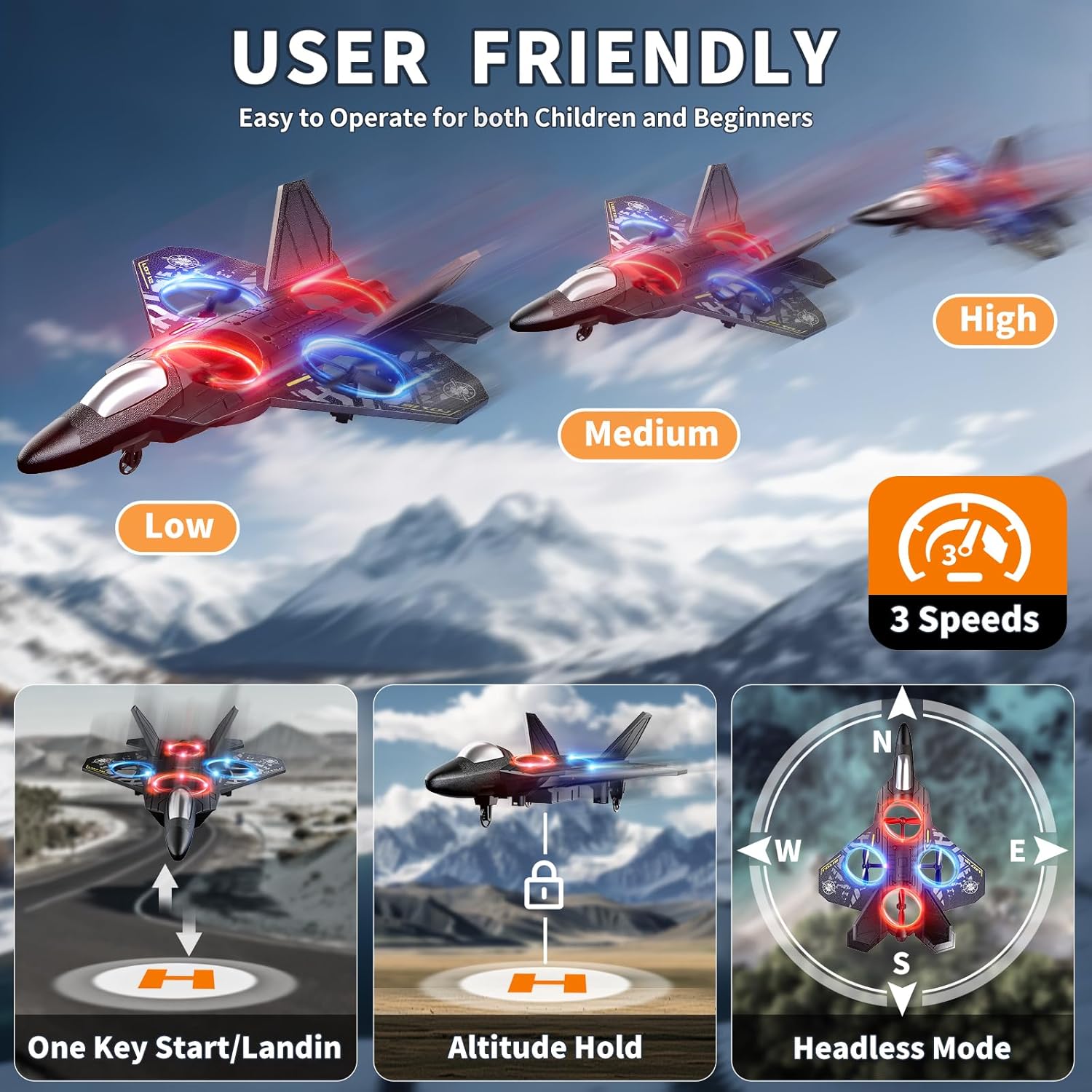 - Featuring four built-in propellers with a unique protective structure, this foam remote control airplane ensures kids are safe from spinning propellers.