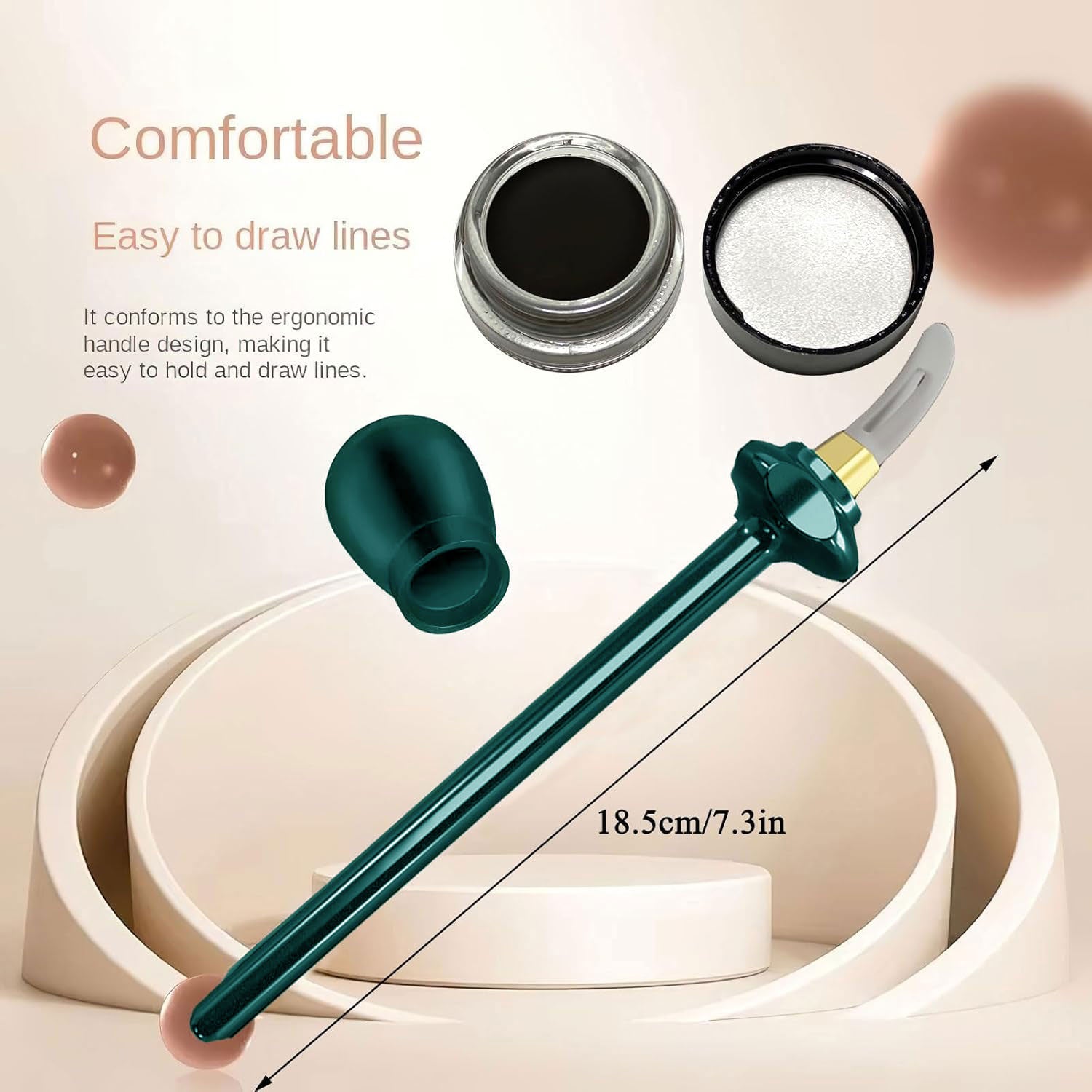 It includes a silicone eyeliner brush and brown eyeliner paste, using the perfect eyeliner tool, easy to create smooth, accurate eyeliner. Our easy-to-hold, comfort-grip handle has a finger stabilizer and a soft, flexible tip to keep you in control as you gently float the balmy eyeliner cream along your inner or outer lash line.