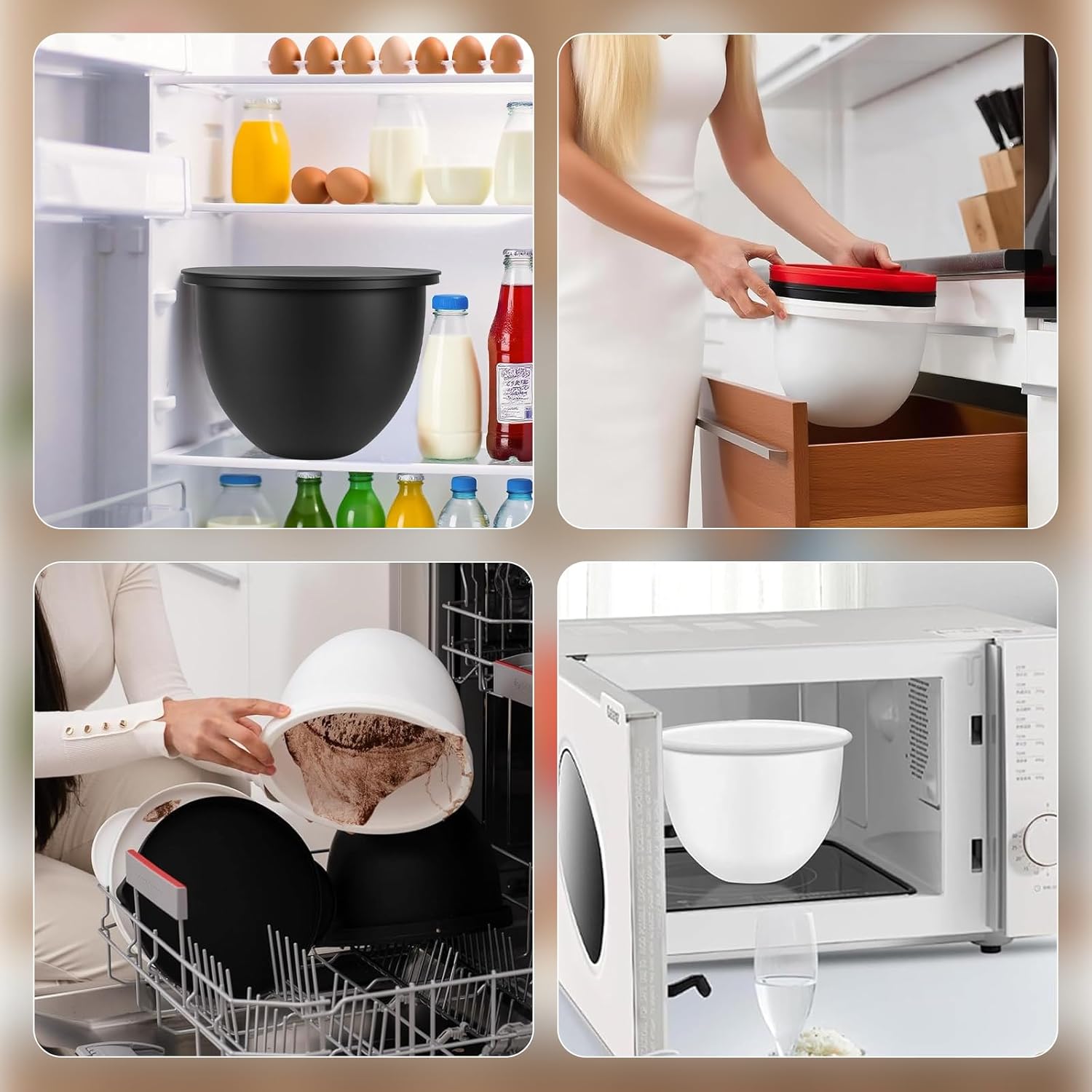 With food-grade silicone liners and lids included, easily switch between mixtures and recipes without the need for extra bowls, which simplify your baking experience.