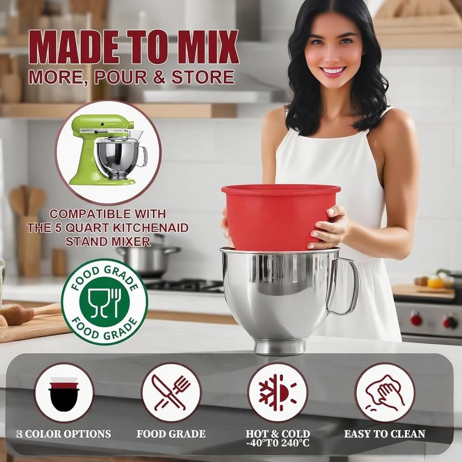 These silicone liners are specifically designed for 5-quart mixers, ensuring a perfect fit and reliable performance without the need for additional bowls or specialized equipment. Crafted from high-quality food-grade silicone, these reusable mixer liners are dishwasher and microwave safe, ensuring longevity and versatility for daily kitchen tasks.