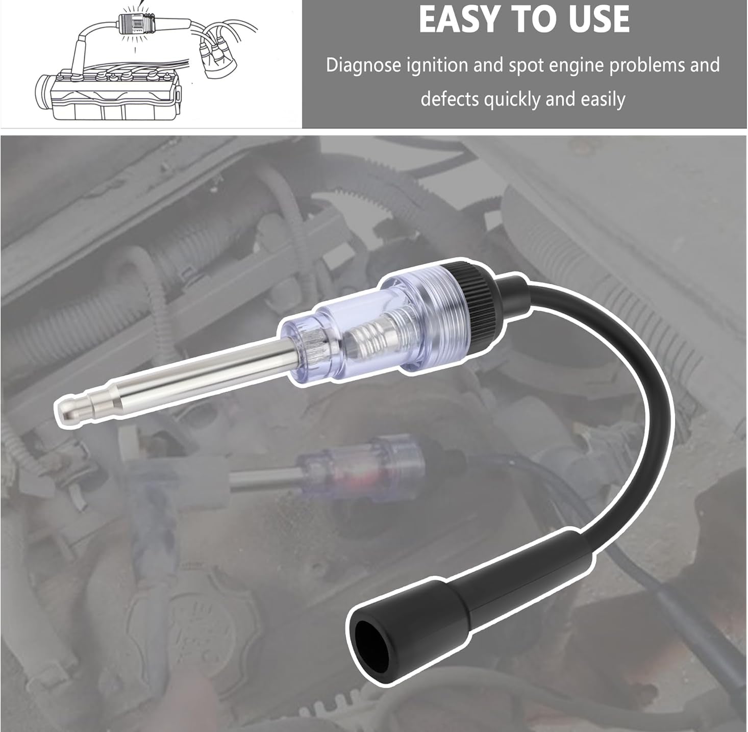 - Simply connect the tester and crank your engine. The integrated, high-intensity LED indicator lights will flash brightly and synchronously with every spark, providing an immediate and unambiguous visual confirmation.