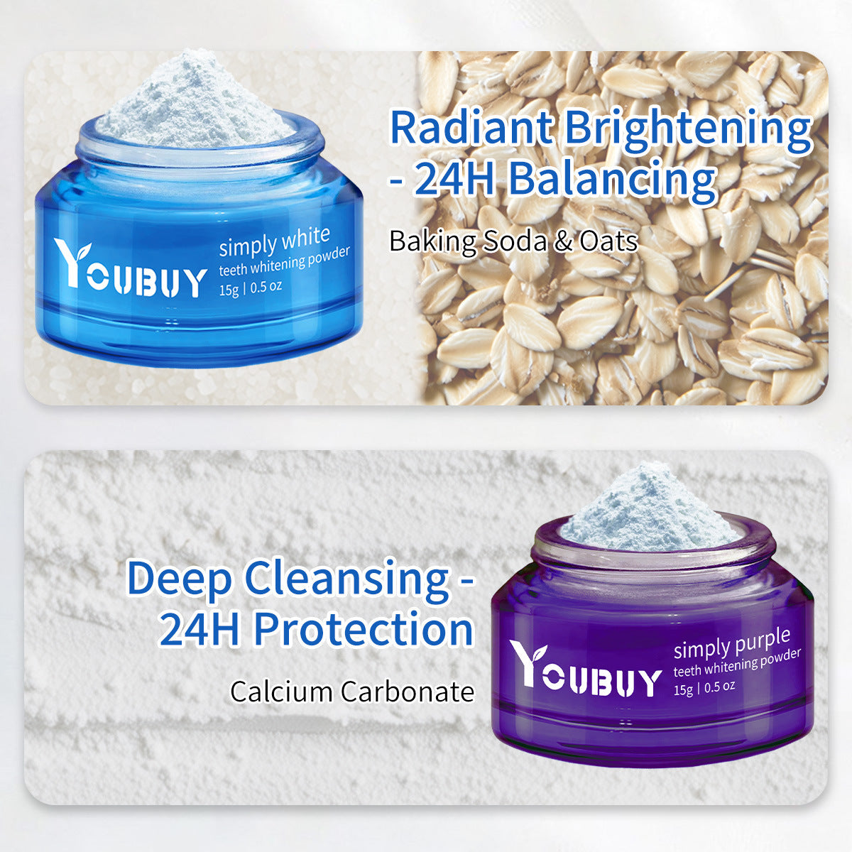 YOUBUY Teeth Cleaning and Whitening Powder Combination Pack has become a leader in the oral care field with its excellent ingredient formula, powerful cleaning and whitening functions, convenient usage and wide range of applicable people. Choosing YOUBUY means choosing to invest in the health and beauty of your teeth and start a fresh and white oral care journey.
